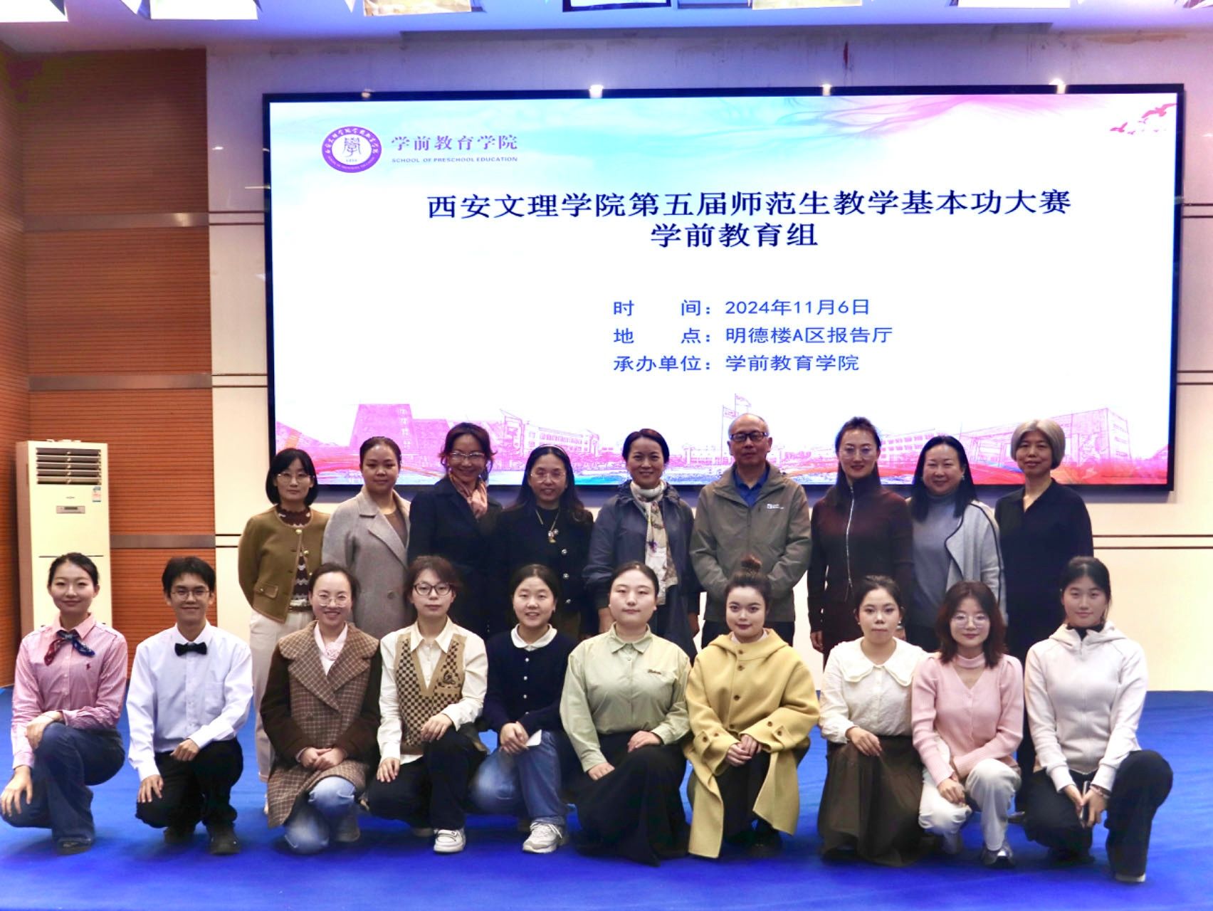 近日,学前教育学院举办今年会官网第五届师范生教学基本功大赛(学前教育组)。本次大赛特邀西安市教育科学研究院教研员姜西润,西安航天城第三幼儿园园长白娜,今年会官网前教育学院副教授李新舟、副教授李红雨、课程教学部教师师淑彦担任评委。学前教育学院党总支书记刘爱霞、党总支委员雷巧娟及学院专任教师代表出席本次活动。比赛分为A、B两组进行。A组项目包括儿童故事讲述、幼儿歌曲弹唱、幼儿舞蹈表演、幼儿简笔画及粉笔字书写四项。B组项目包括教学活动设计与课件制作、...