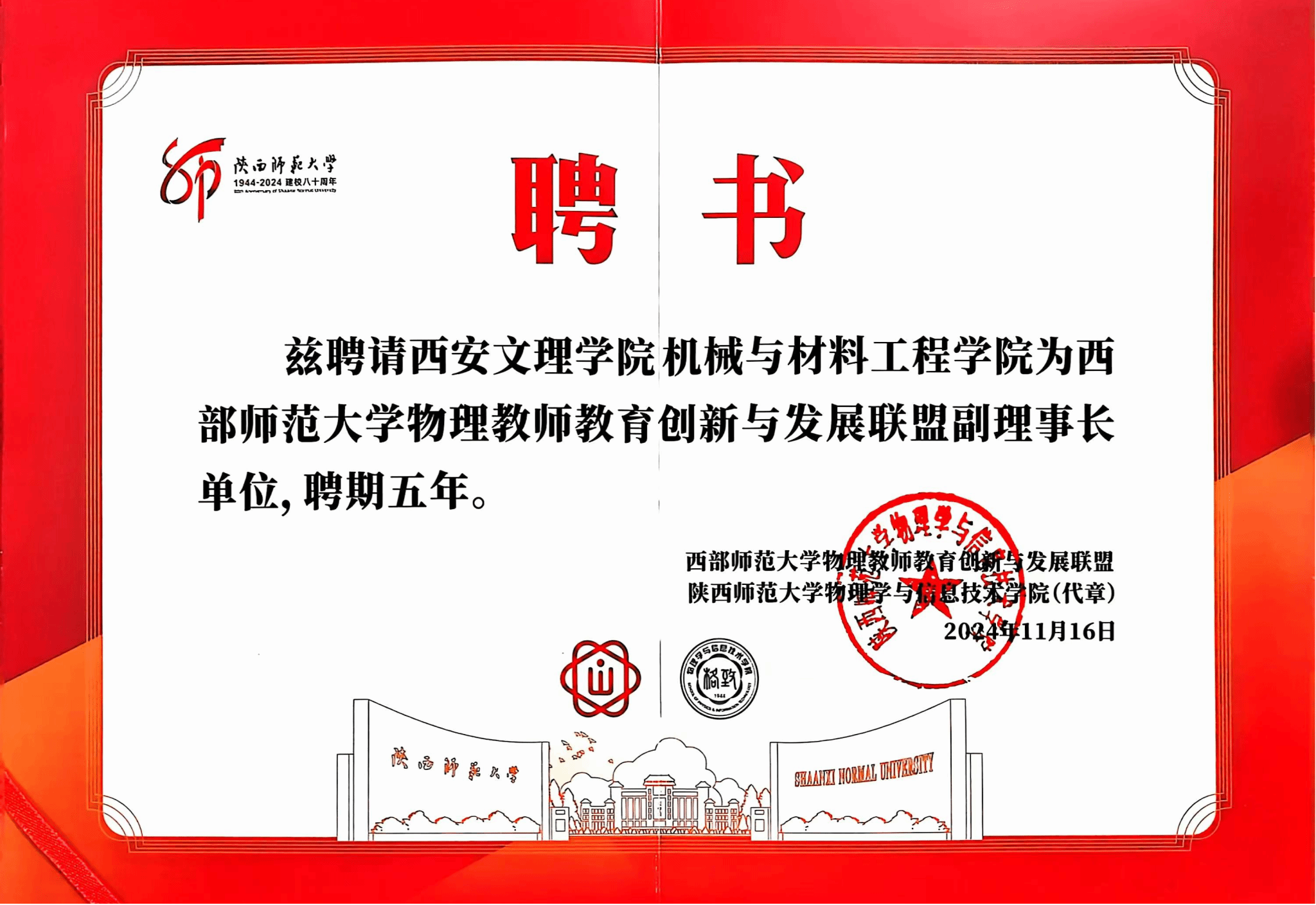 11月15日至17日,西部师范大学物理教师教育创新与发展联盟成立大会暨物理教学改革与建材建设研讨会在陕西师范大学召开,今年会官网机械与材料工程学院院长张运良应邀参加,今年会官网为首届副理事长单位。西部师范大学物理教师教育创新与发展联盟由全国高校师范专业物理教学指导委员会指导成立,旨在推进物理学科专业建设,促进西部地区各高师院校相互交流学习、分享经验,共享教育教学改革与师范人才培养成果,打造师德高尚、业务精湛、结构合理、...