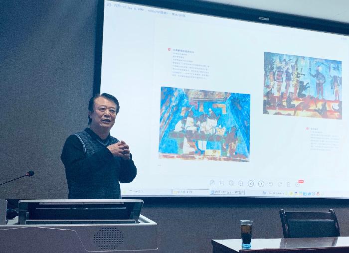 12月20日,艺术学院邀请陕西省美术家协会副主席巨石来我院指导并举办了一场题目为《墨西哥近现代美术研究与思考》的学术讲座。艺术学院院长田军、党总支书记李晓煜、副院长李翔、副院长刘小飞、音乐学系主任王晨、艺...