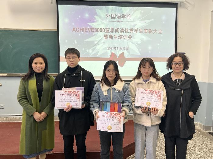11月12日下午,第一届蓝思阅读表彰大会暨第二届ACHIEVE3000蓝思阅读培训会同时在腾讯会议和H0127举行,外国语学院李征娅副院长和姚金红副院长为受表彰的16名学生和老师颁发了获奖证书和奖品。 此次表彰分为三个评选标...