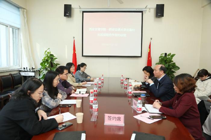 11月17日下午,外国语学院与西安交通大学出版社出版战略合作协议签约仪式在弘文楼H0240举行。西安交通大学出版社副总经理、副总编秦茂盛,人文社科部副主任王斌会、外语编辑李蕊、蔡乐芊、庞钧颖,外国语学院院长韩红...