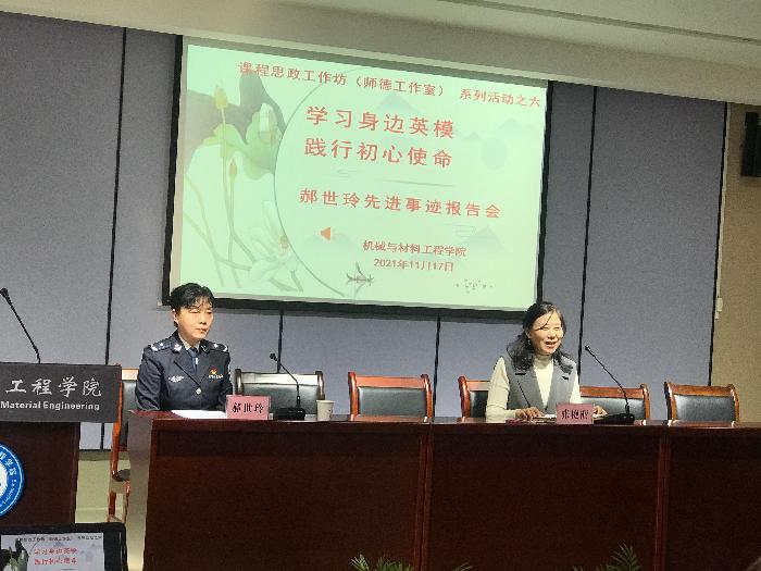 11月17日下午,机械与材料工程学院课程思政工作坊(师德工作室)举行了师德教育专题活动——学习身边英模,践行初心使命,特别邀请身边的英模——莲湖分局劳动南路派出所社区民警、全国特级优秀人民警察郝世玲作先进事...