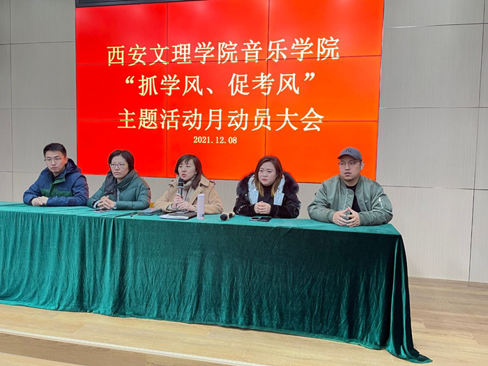 为进一步规范学生日常行为,推进学院学风建设,12月8日中午,音乐学院在学术报告厅举办“抓学风、促考风”主题活动月动员大会,会议由党总支委员、干部鲍艳主持,学院全体辅导员、学生干部共计60余人参加会议。 会议解...