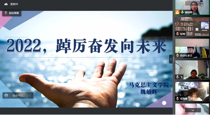 1月13日晚,学校“思政大讲堂”首场开讲。邀请马克思主义学院副教授魏娟辉作题为《2022,踔厉奋发向未来》的报告。校学生会全体干部、青马班学生骨干、各学院学生党员、团学干部和马克思主义学院全体学生800余人在线...