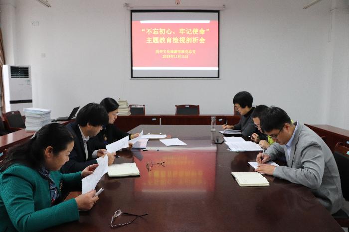 按照校党委 “不忘初心、牢记使命”主题教育统一安排部署,11月11日上午,历史文化旅游学院党总支召开“不忘初心、牢记使命”主题教育检视剖析会。全体党总支委员、院领导班子成员参加会议。 会上,院班子成员依次发...