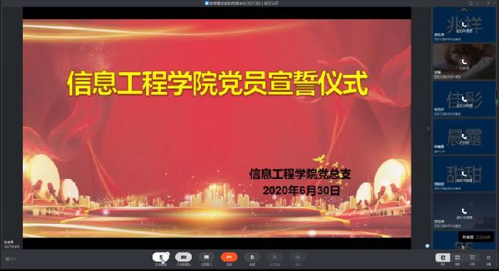 为庆祝中国共产党成立99周年,6月30日上午,信息工程学院党总支以线上线下相结合的方式,隆重举行党员宣誓活动,学院全体辅导员、本学期新发展的20名学生党员参与此次活动。活动由学院学生党支部书记陈贵霞主持。 活...